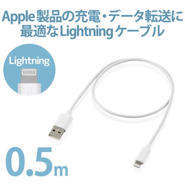 エレコム Lightningケーブル スタンダード 充電 データ通信 0.5m ホワイト┃MPA-FUAL05WH