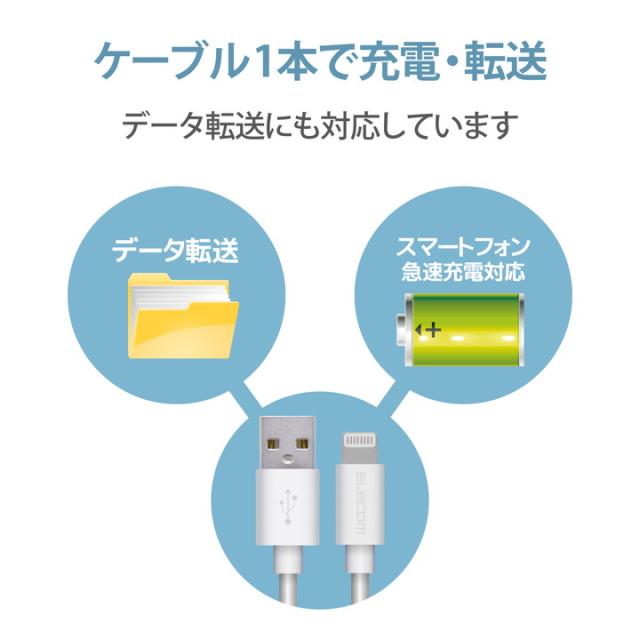Lightningコネクタ搭載のiPhone/iPod/iPadの充電・データ通信ができる!LightningコネクタとパソコンやAC充電器のUSBポートを接続して充電・データ通信ができるUSBケーブル。※iPadはパソコンからは充電出来ません