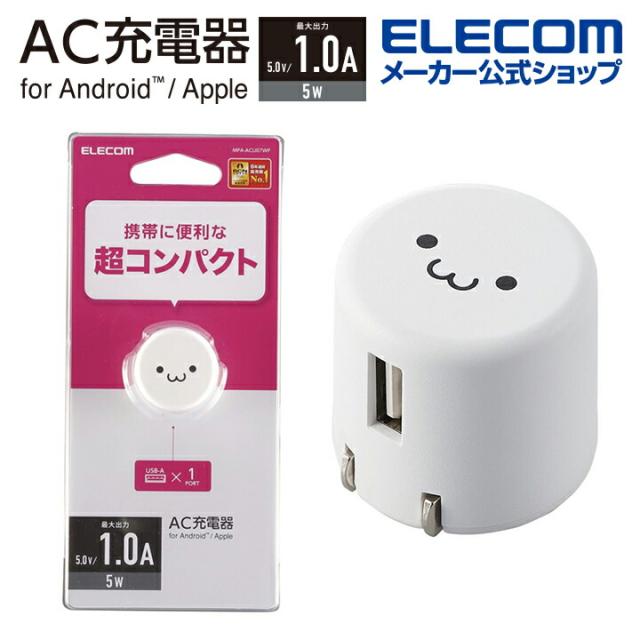 エレコム AC充電器 コンパクト Aポート×1 USB-A メス 1ポート 1.0A出力 ホワイトフェイス┃MPA-ACU07WF