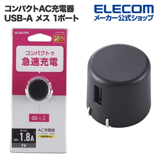 エレコム AC充電器 コンパクト Aポート×1 USB-A メス 1ポート 1.8A出力 ブラック┃MPA-ACU08BK