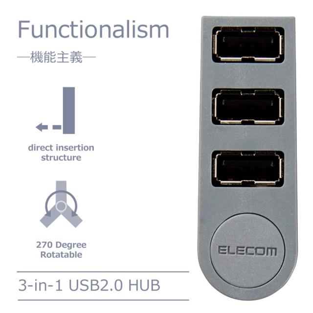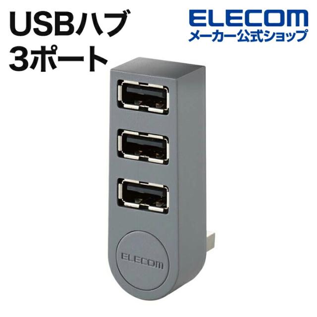 エレコム USBハブ USB2.0 ハブ 3ポート 直挿し USB2.0 Aポート×3 直挿し グレー┃U2H-TZ325BGY/EC
