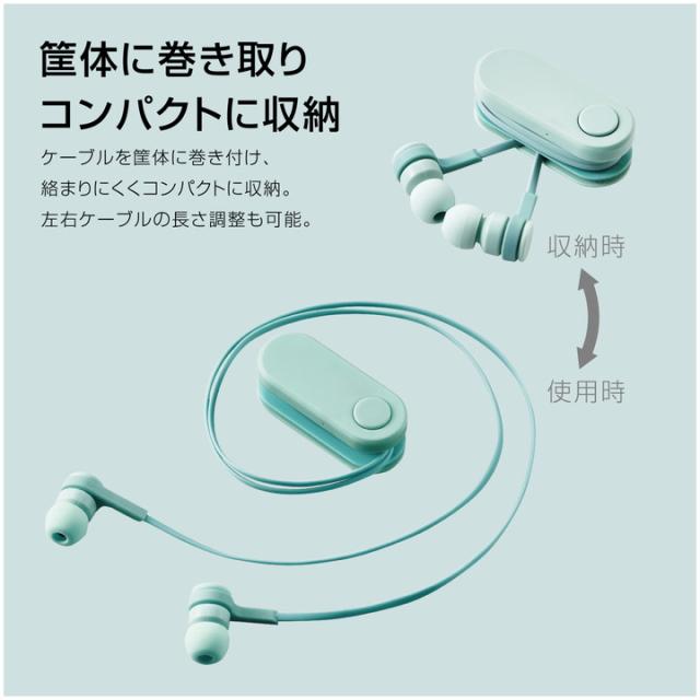 【在庫処分・お買い得!】 エレコム イヤホン Bluetooth SBC 巻取り bund 巻き取りタイプ クリップ付き サックスブルー┃LBT-HPC17BU