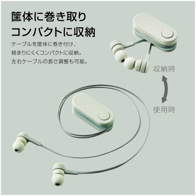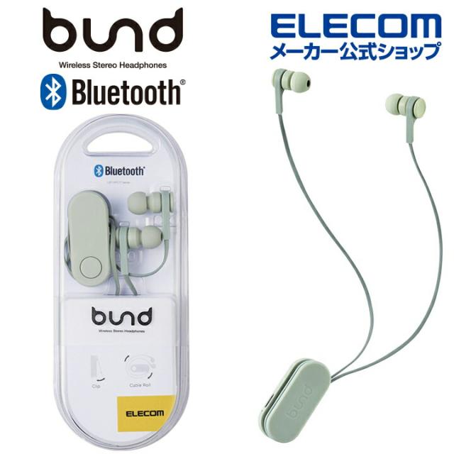 【在庫処分・お買い得!】 エレコム イヤホン Bluetooth SBC 巻取り bund 巻き取りタイプ クリップ付き オリーブカーキ┃LBT-HPC17GN