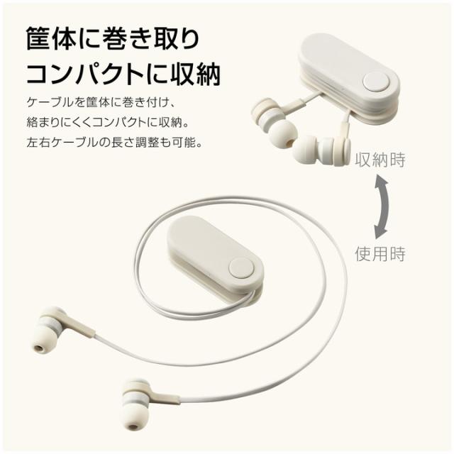 【在庫処分・お買い得!】 エレコム イヤホン Bluetooth SBC 巻取り bund 巻き取りタイプ クリップ付き ストーンホワイト┃LBT-HPC17WH