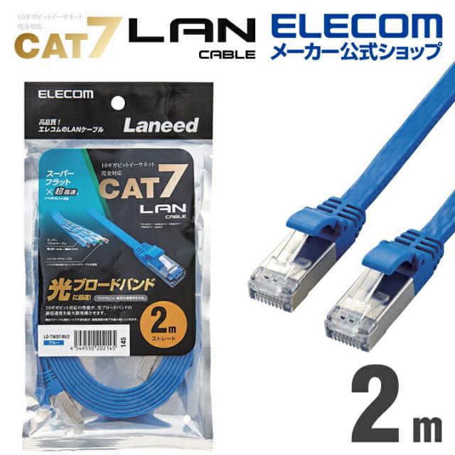 エレコム Cat7準拠 LANケーブルランケーブル インターネットケーブル ケーブル LAN ケーブル フラット 2.0m ブルー ┃LD-TWSF/BU2