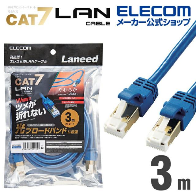 エレコム Cat7準拠 LANケーブルランケーブル インターネットケーブル ケーブル LAN ケーブル 爪折れ防止 やわらか 3.0m ブルー ┃LD-TWSYT/BM3