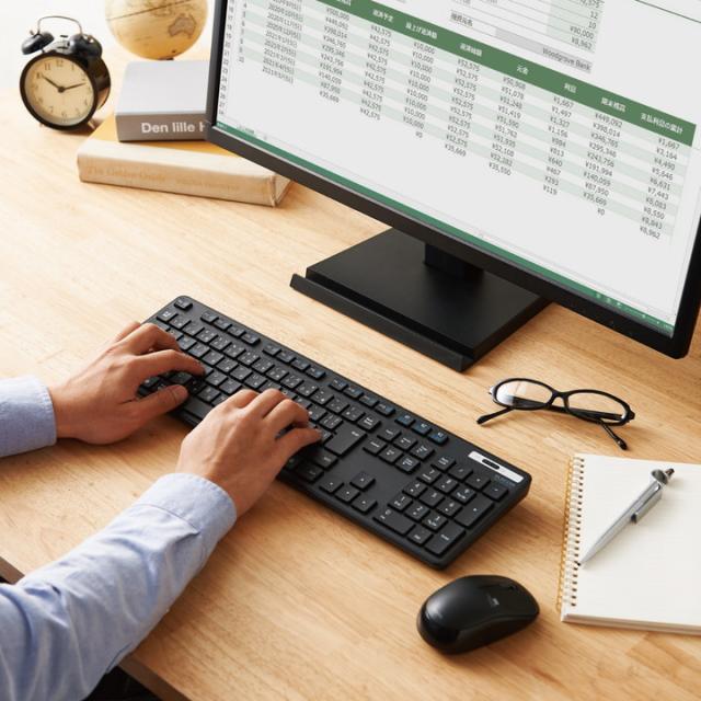 日々のパソコン操作に安心をプラスする抗菌仕様! スマホ・タブレット・パソコンをマルチに接続可能な3台切替機能を搭載したBluetooth(R)5.0薄型フルキーボード。