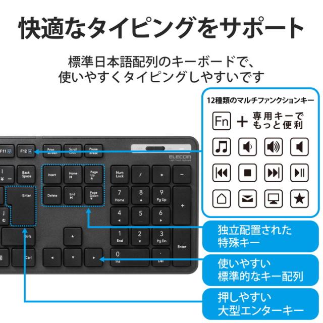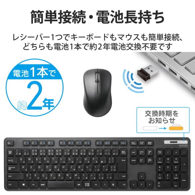 エレコム 無線キーボード セット フルサイズ 無線 薄型 フルキーボード&マウス セットメンブレン式 抗菌 マウス付 ブラック┃TK-FDM110MKBK