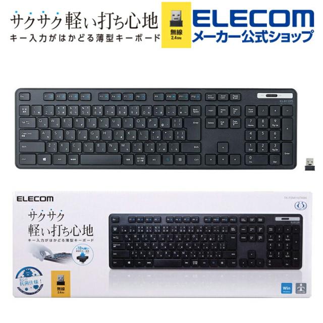 エレコム 無線キーボード フルサイズ 無線 薄型フルキーボード メンブレン式 抗菌 ブラック┃TK-FDM110TKBK