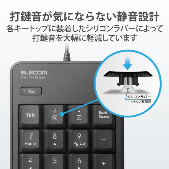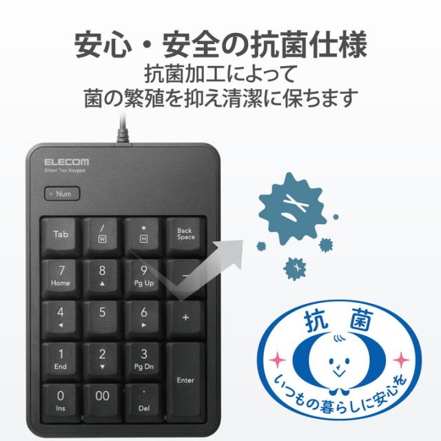 エレコム 有線 静音 テンキーパッド 抗菌 USB-A テンキー ブラック┃TK-TCM021SKBK