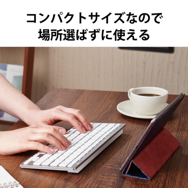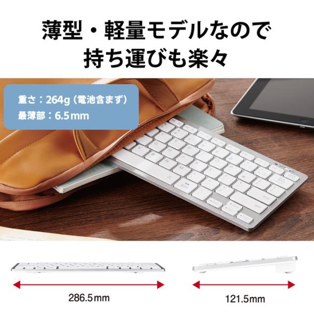 持ち運びに便利な最薄部6.5mm・重さ264gの薄型・軽量設計! ペアリングした最大3台までのデバイスを瞬時に切り替えられるBluetooth(R)パンタグラフミニキーボード。