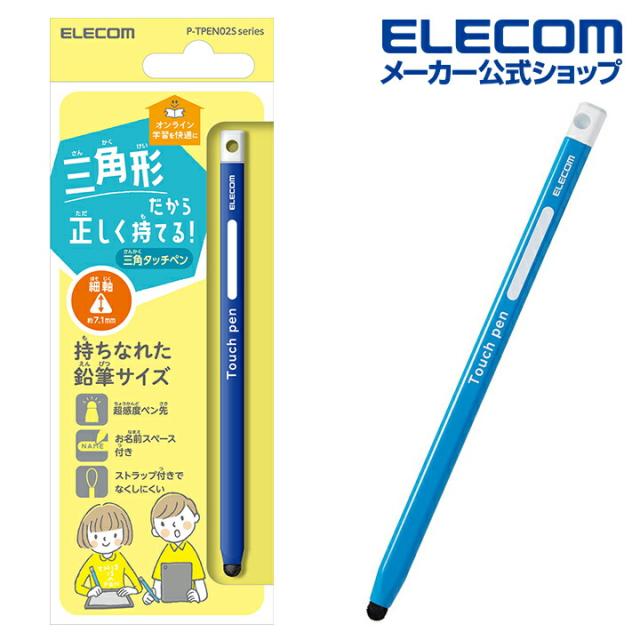 エレコム スマホ 用 三角型タッチペン(細) 青色 鉛筆型 三角 細軸 超感度タイプ ブルー┃P-TPEN02SBU