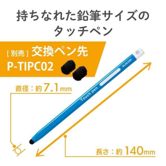 力を入れなくてもすらすら書ける、三角形の鉛筆型タッチペンです。![]() ■三角形で、持ちやすい形状のスマートフォン・タブレット用タッチペンです。 ■小さな力で書けるので、筆圧が弱かったり、筆記具を持ちなれていないお子様に最適です。 ■名前を記入するスペースが付いており、お子様がタッチペンを紛失してしまうのを防ぎます。 ■ペン先に高密度ファイバーチップを採用し、超感度を実現。 ■高密度ファイバーチップにより、軽い力で滑らかな操作が可能です。 ■ペン先に植毛された繊維が広範囲の接地面積を確保することで、ペン先を押し当てることなく、滑らかに操作できる超感度を実現しました。 ■指先でのタッチ操作と違い、液晶画面を汚さずに操作が可能です。 ■タッチ操作はもちろん、スライド操作も快適に行えます。 ■※フィルムの種類によっては、操作時にこすれ音が生じたり、ペンの反応が悪くなることがあります。 ■ペン先が劣化した際に別売のペン先(P-TIPC02)に交換できて、快適な操作感を維持できます。 ■タブレットなどに装着できるストラップがついています。 ![]() ■対応機種:各種スマートフォン・タブレット ※特定のアプリ/ソフトをご使用の際に、専用タッチペンのみでの描写設定をされている場合はご使用できない場合があります。 ■外形寸法:長さ約140mm×ペン径約7.1mm ペン先約5.5mm ■材質:ペン先:シリコンゴム、ナイロン繊維、本体:アルミニウム ■ストラップ有無:◯ ■カラー:ブルー |