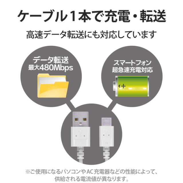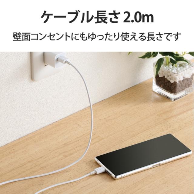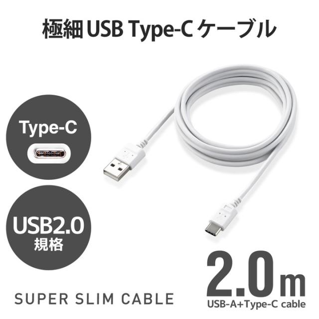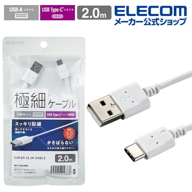 エレコム スマホ用 極細 USB Type-C ケーブル スリム USB(A-C) タイプC 極細 2.0m ホワイト┃MPA-ACX20WH2
