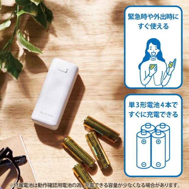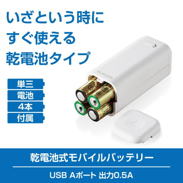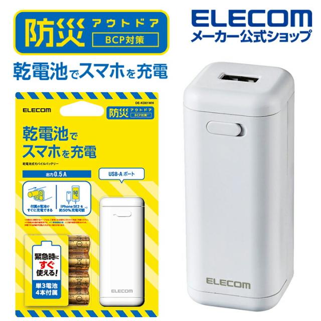 エレコム モバイルバッテリー 乾電池式 USB-A 1ポート 防災・アウトドア 乾電池式 単3電池4本付属 ホワイト┃DE-KD01WH