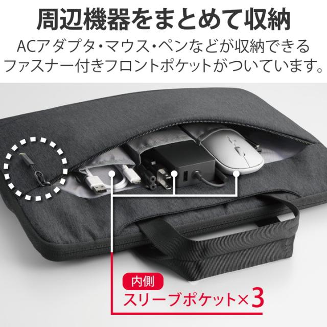 本体と周辺機器をまとめて収納!シーンを選ばず使えるカジュアルタイプ。Surface Laptopのために設計されたインナーバッグ。![]() ■Surface Laptopのために設計されたインナーバッグです。 ※対応機種は仕様を参照ください。 ■ACアダプター・マウス・ペンなどの周辺機器をまとめて収納できるフロントポケットがついています。ポケット内部には、収納物の整理に便利なスリーブポケットを備えています。 ■シーンを選ばないカジュアル生地を採用しています。 ■クッション入りソフトハンドルを採用しています。未使用時は中に収納可能です。 ■バッグ内部には、出し入れ時にパソコン本体を傷つけにくい起毛素材を採用しています。 ■自社環境認定基準を1つ以上満たし、『THINK ECOLOGY』マークを表示した製品です。 ■環境保全に取り組み、製品の包装容器が紙・ダンボール・ポリ袋のみで構成されている製品です。 ■環境保全に取り組み、製品の包装容器が紙・ダンボール・ポリ袋のみで構成されている製品です。 ![]() ■外形寸法:約 幅380mm×厚み25mm×高さ280mm ■内寸:約 幅345mm×厚み20mm×高さ250mm ※参考収容寸法 ■重量:約 250g ■材質:本体:ポリエステル ■カラー:ブラック ■対応モデル:Surface Laptop 3 15インチ(2019年発売モデル)/Surface Laptop 4 15インチ(2021年発売モデル)/Surface Laptop 5 15インチ(2022年発売モデル) ■前面ポケット:小物ポケット×3 |