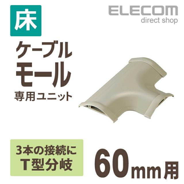 【在庫処分・お買い得!】 エレコム 床用モールケーブルカバー 接続ユニット T型分岐 ベージュ 幅60mm┃LD-GAT47