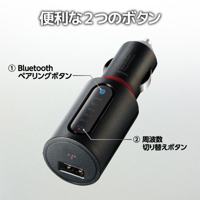 ▲クーポン対象商品(5/1〜5/31)▲ エレコム Bluetooth FM トランスミッター 2.4A USBポート 付 4チャンネル 車で音楽 ブラック┃LAT-FMBT02BK