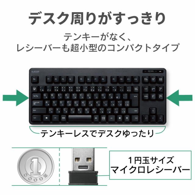 エレコム 無線 コンパクト キーボード & メンブレン式 コンパクトサイズ マウス セット 92キー 日本語配列 ブラック┃TK-FDM105MBK