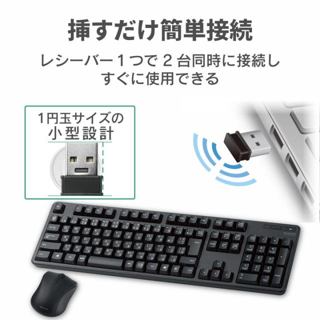 エレコム 無線 フルキーボード & 109キー パソコン 日本語配列 メンブレン式 ワイヤレス マウス セット ブラック┃TK-FDM106MBK