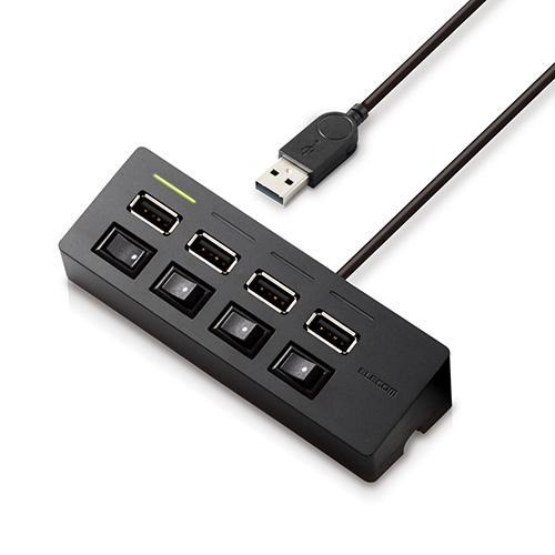エレコム USBハブ スイッチ付 ACアダプタ付 USB2.0 4ポート マグネット搭載 個別スイッチ セルフパワー AC充電器付属 100cm ブラック┃U2H-TZS428SBK