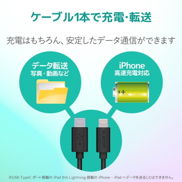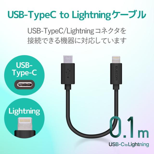 エレコム USB C - Lightning ケーブル タイプC ライトニング スタンダード 0.1m ブラック┃MPA-CL01XBK