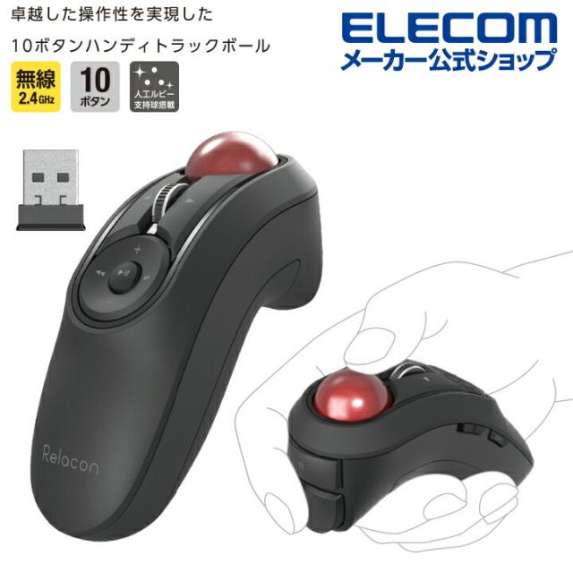 エレコム ワイヤレス ハンディ トラックボール Relacon メデイアコントロール ブラック┃M-RT1DRBK