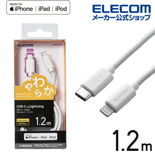 エレコム USB-C to Lightningケーブル やわらか ホワイト 1.2m┃MPA-CLY12WH