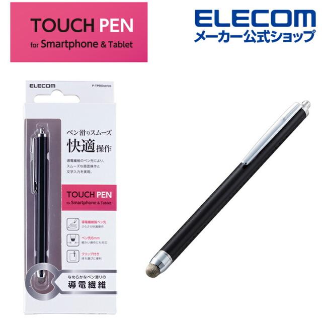 エレコム スマホ 用 スタンダード導電繊維 タッチペン 導電繊維 タイプ ブラック┃P-TPS03BK