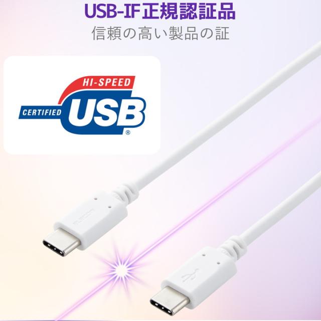 エレコム USB2.0 ( TypeC - C ) PD対応 USBケーブル タイプc 急速充電 認証品 ホワイト┃MPA-CC20PNWH