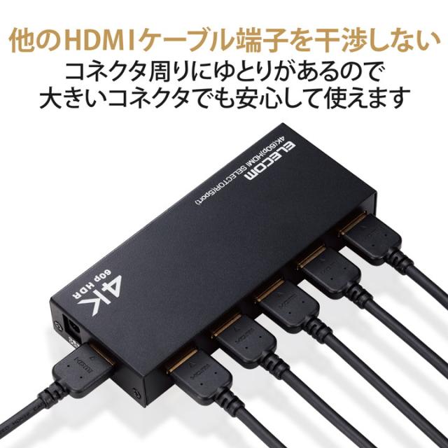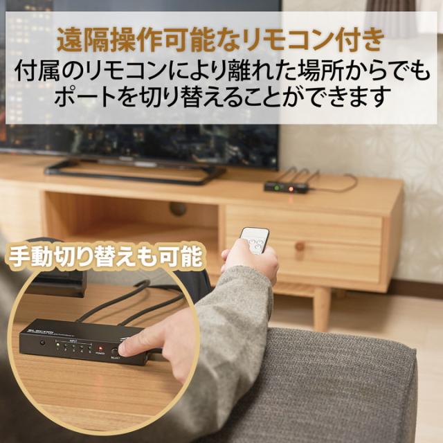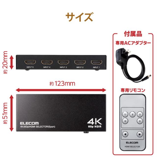 【在庫処分・お買い得!】 エレコム HDMI切替器 5入力 1出力 HDCP2.2対応 4K60P対応 メタル筐体 専用リモコン付 ブラック┃DH-SW4KP51BK
