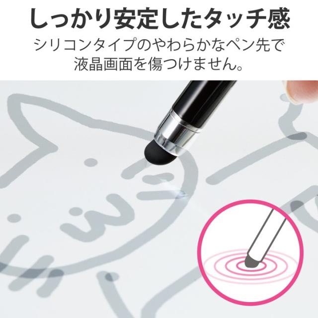 エレコム スマホ ・ タブレット用 抗菌 タッチペン スタイラスペン シリコン ブラック┃P-TP02ABBK