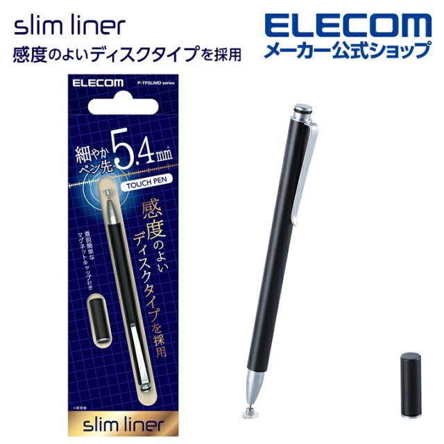 【在庫処分・お買い得!】 エレコム スマホ 用 スリムタッチペン ディスクタイプ マグネットキャップ付き ブラック┃P-TPSLIMDBK