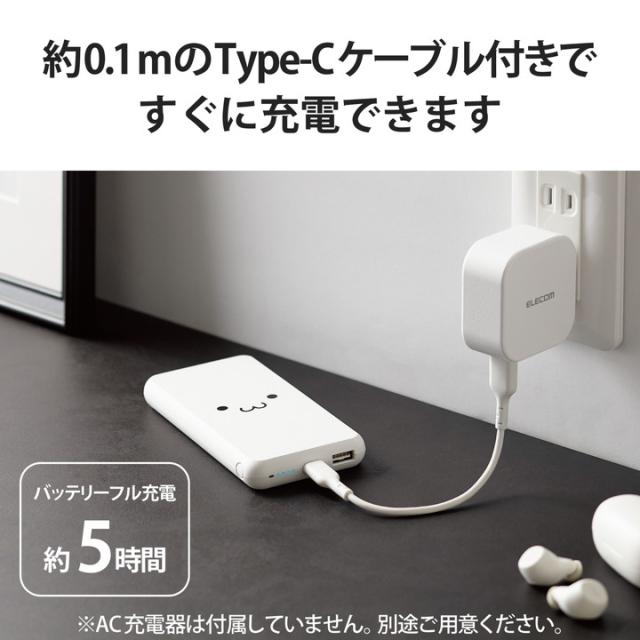 USB Type-C(TM)コネクター搭載スマートフォンをすぐに充電できるUSB Type-C(TM) to USB-Aケーブル付きモバイルバッテリー。手になじむラウンド形状と薄型デザインが重ね持ちに最適なデザインです。