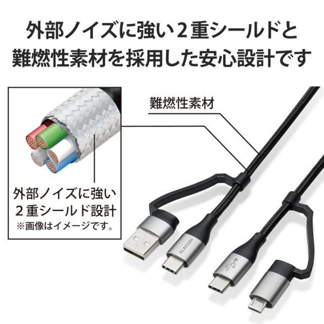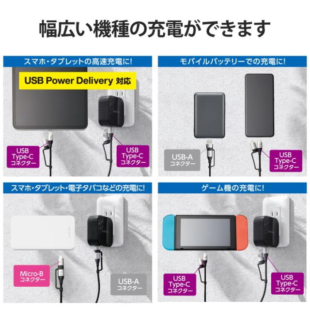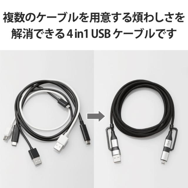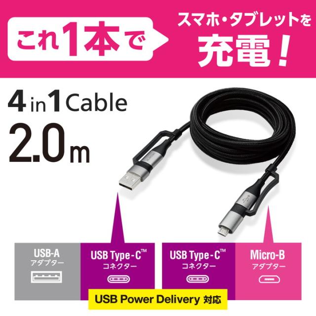 エレコム 4in1 USBケーブル USB Type-C USB-A USB Micro-B USB PD対応 2.0m ブラック┃MPA-AMBCC20BK