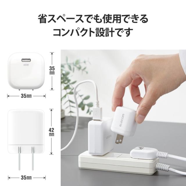 【在庫処分・お買い得!】 エレコム AC充電器 USB PD 45W AC充電器 C×1 USB充電器 Type-C 1ポート スイングプラグ ホワイト┃MPA-ACCP29WH
