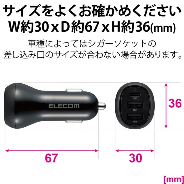 エレコム 車載 シガーチャージャー 3ポート USB PD 18W + クイックチャージ Type-C×1 USB-A×2 ブラック┃MPA-CCPD06BK