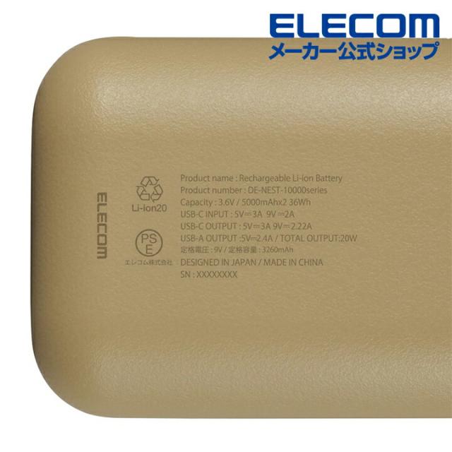 エレコム モバイルバッテリー NESTOUT 10000mAh 大容量 20W C×1+A×1 アウトドア サンドベージュ┃DE-NEST-10000BE