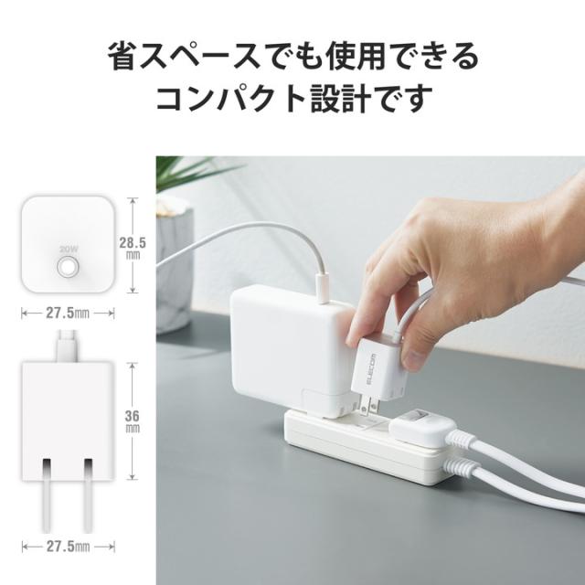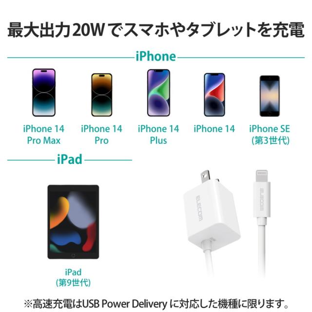 エレコム Lightning AC充電器 USB PD 20W Lightningケーブル一体型 ホワイト┃MPA-ACLP05WH