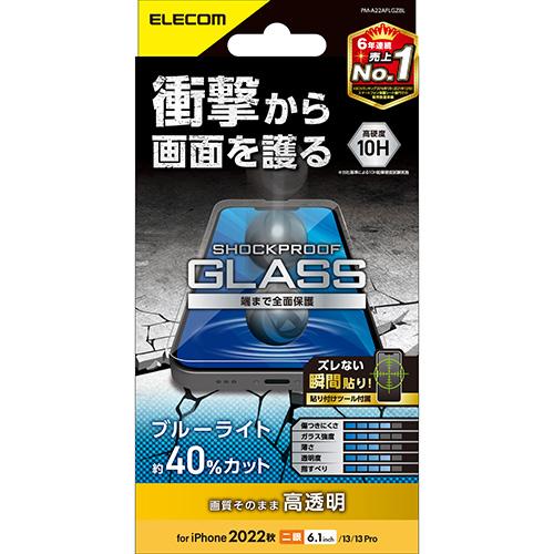 【在庫処分・お買い得!】 エレコム iPhone 14 用 ガラスフィルム SHOCKPROOF 高透明 ブルーライトカット┃PM-A22AFLGZBL