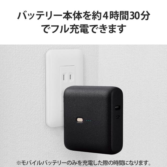 エレコム モバイルバッテリー AC充電器 一体 ケーブル無し 10000mAh 大容量 20W C×1 + A×1 ブラック┃DE-AC07-10000BK