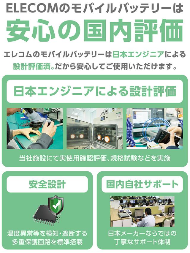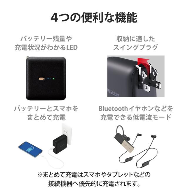 AC充電器としてもモバイルバッテリーとしても使用可能な2in1タイプ!USB Power Delivery規格に準拠し、20Wの高出力で対応機器を超高速充電できる、10000mAhのAC充電器一体型モバイルバッテリーです。![]() ■AC充電器としてもモバイルバッテリーとしても使用可能な2in1タイプのAC充電器一体型モバイルバッテリーです。 ■USB Power Delivery規格に対応し、20Wの高出力で対応機器を超高速充電できます。 ■※USB Type-C(TM)(USB-C(TM))ポートのみ ■本体に搭載されている電源プラグをコンセントに差し込むことで、本製品を直接充電することができます。 ■充電している本製品にスマートフォンを接続することで、AC充電器として使用可能です。 ■※本製品とスマートフォンを接続するケーブルは付属していません。 ■電源プラグ部分には回転させて本体に収納可能なスイングプラグ機構を採用しています。持ち運びに便利です。 ■USBポートに搭載した高性能ICが接続機器を自動で見分けて最適な出力で最速に充電できる“おまかせ充電”に対応しています。 ■本製品とスマートフォンをまとめて充電できる“まとめて充電”に対応しています。 ■※スマートフォンへ優先的に充電されます。スマートフォンの充電が完了すると本製品に充電されます。 ■Bluetoothヘッドセット・イヤホンなどの充電電流の小さい小型電子機器を最適な電流で充電することができる“低電流モード”を搭載。 ■モバイルバッテリー本体を約4時間30分で充電できます。 ■※本製品のみを充電した場合の目安時間です。 ■本製品(バッテリー容量10000mAh)で、1800mAhのスマートフォンを約3.3回、3000mAhのスマートフォンを約1.9回充電可能です。 ■※満充電した本製品で電源オフの状態のスマートフォンを充電する際の目安回数です。充電中に電源を入れたり、機器を使用したりしている場合は記載の数値まで充電できない場合があります。 ■USB-Aポート、USB Type-C(TM)(USB-C(TM))ポートをそれぞれ1ポートずつ搭載しており、2ポート合計15Wの出力が可能な高出力モデルです。 ■電池残量は4段階のLEDランプ点灯で確認可能です。 ■約500回繰り返し使用可能な充電式リチウムイオン電池を搭載しています。 ■内蔵の充電式リチウムイオン電池は、JIS C8711およびJIS C8712(JIS C8714の内容を含む)に準拠した安全設計です。 ■日本の電気用品安全法(PSE)の技術基準に適合した安全性の高い商品です。 ■過充電・過放電・過電流防止機能および短絡保護機能と温度検知機能の5つの保護機能を備えた安心の回路設計です。 ■電池容量が160Wh(43,243mAh)以下であるため、機内持ち込みも可能です。 ※航空会社の規定によって例外がある場合があります。 ■※工場出荷時に70%程度充電されています。充電式リチウムイオン電池は時間とともに放電するので、ご使用になる前に充電することを推奨します。 ■※ケーブルを挿したままにするとバッテリーの残量が減ってしまいます。使用しない場合は必ずケーブルを外してください。 ■※USB Type-C and USB-C are trademarks of USB Implementers Forum. ■本製品は、一般社団法人JBRCの回収対象製品であり、回収協力自治体や協力店(家電量販店・HCなど)で回収が可能です。 ■※JBRCのホームページでお住まいの地域の回収協力自治体・協力店をご確認ください。 ■自社環境認定基準を1つ以上満たし、『THINK ECOLOGY』マークを表示した製品です。 ■環境保全に取り組み、製品の包装容器におけるプラスチック重量を、社内基準製品より20%以上削減した製品です。 ■環境保全に取り組み、製品の包装容器が紙・ダンボール・ポリ袋のみで構成されている製品です。 ![]() ■対応機種:iPhoneおよびUSB端子で充電するスマートフォン、タブレット、他小型電子機器 ■定格入力電圧:AC:100-240V 50/60Hz ■定格入力電流:AC:0.6A ■コネクター形状(電源出力側):USB Type-C(TM)(USB-C(TM))ポート×1、USB-Aポート×1 ■定格出力電圧:USB Type-C(TM)(USB-C(TM))は5V/9V、USB-Aは5V ※2ポート同時使用時はUSB Type-C(TM)(USB-C(TM))は5Vに固定 ■定格出力電流:最大出力20WAC充電器として使用時:バッテリーとして使用時共にUSB Type-C(TM)(USB-C(TM))は2.4A/2.22A、USB-Aは2.4A、2ポート同時使用時は合計3.0A ■電池種類:充電式リチウムイオン電池 ■電池定格容量:3.6V/10000mAh 36.0Wh ■充電時間:約4時間30分 ■外形寸法:幅約81mm×奥行約34mm×高さ約90mm ■重量:約275g ■カラー:ブラック ■くり返し使用回数:500回 ■環境配慮事項:使用温度:0〜40℃ ■電気用品安全法:○PSE 特定以外の電気用品 ◇PSE 特定電気用品 ■保証期間:1年間 ■使用可能地域:本製品は日本国内の電源を想定して設計されていますので、日本国外では使用できません。 ■その他:iOS端末で使用する場合は別途iOS用ケーブルをご用意ください。 ※USB Type-C and USB-C are trademarks of USB Implementers Forum. |