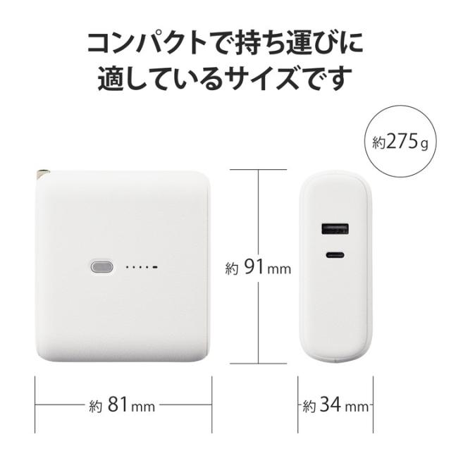 エレコム モバイルバッテリー AC充電器 一体 ケーブル無し 10000mAh 大容量 20W C×1 + A×1 ホワイトフェイス┃DE-AC07-10000WF