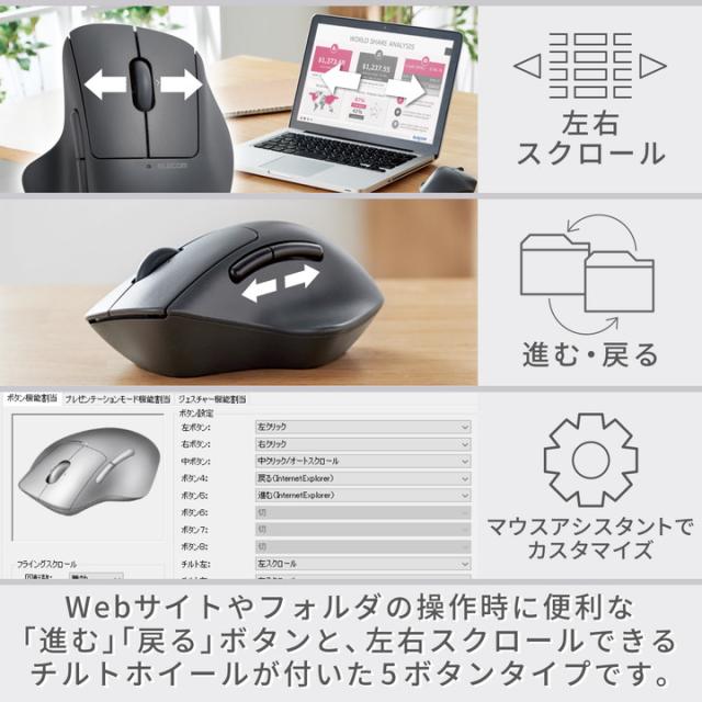 エレコム ワイヤレスマウス Bluetooth 5.0 静音 チルトホイール 5ボタン SHELLPHA 抗菌 仕様 電池式 ブラック┃M-SH30BBSKBK