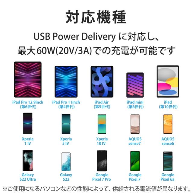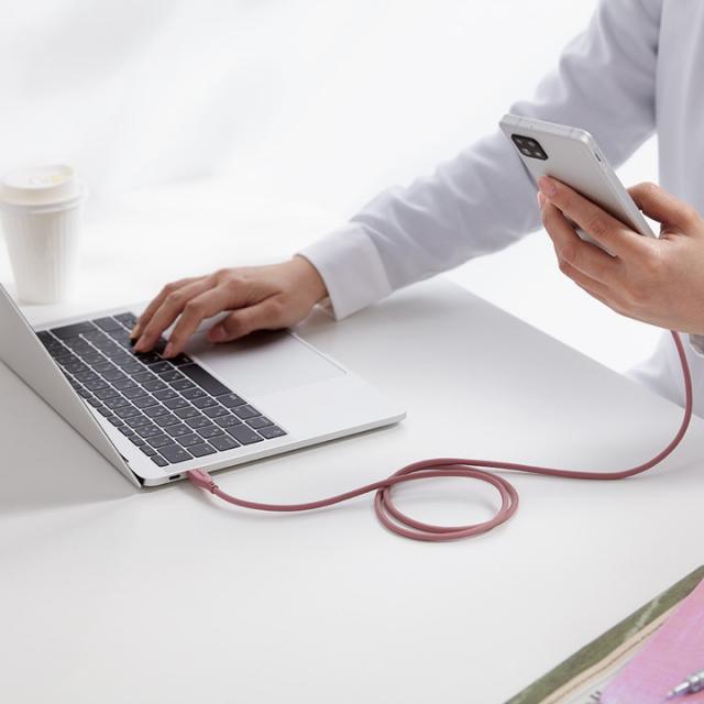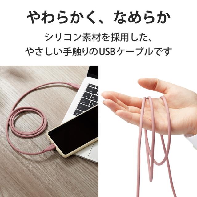 スモーキー&ニュアンスカラーがオシャレなUSBケーブルです。シリコン素材を採用した柔らかく、なめらかな手触りが特徴です。 折り癖のつきにくさと高い耐久性を兼ね備えているので、モバイル用として束ねて持ち運ぶのにおすすめです。USB Type-C(TM)コネクターを搭載したパソコン・充電器と、USB Type-C(TM)コネクターを搭載したスマートフォンを接続して充電・データ通信ができます。USB Power Delivery(最大60W)に対応し、スマートフォン・タブレットの超高速充電に対応しています。