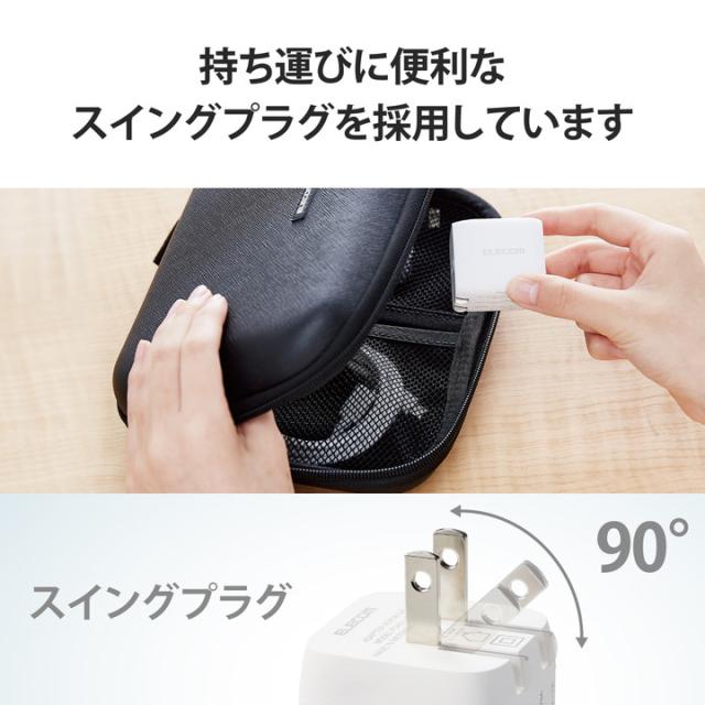 USB Type-C(TM)(USB-C(TM))ポートを2ポート搭載し、iPhoneなどのスマートフォンとiPad などのタブレットを2台同時充電できるUSB AC充電器です。手のひらにすっぽり隠れるほど小さく、軽量なので外出や出張などの際の持ち運びに便利です。![]() ■USB Type-C(TM)(USB-C(TM))ポートを2ポート搭載し対応するスマートフォン、タブレット、ノートパソコンなどを充電できる、GaN(窒化ガリウム)を採用し小型で軽量なUSB AC充電器です。 ■※USB Power Delivery規格45Wまでで充電できる機器に限ります。 ■出力端子が2ポートあるので、iPhoneなどのスマートフォンとiPad などのタブレットを2台同時充電できます。 ■※2ポート同時出力時は合計最大45Wとなります。 ■USB Type-Cポートは、USB Power Delivery規格、オプションのPPS(Programmable Power Supply)規格に対応し、同規格に対応するノートパソコンやスマートフォン、タブレットなどを充電可能です。 ■USB Type-Cポート単独使用時、機器に応じて出力が5V/3A、9V/3A、12V/3A、15V/3A、20V/2.25Aと可変し、iPhoneなどのスマートフォンから、iPad などのタブレット、Windowsノートパソコンまで幅広く充電できます。 ■手のひらにすっぽり隠れるほど小さく(約44mm×38mm×40.5mm)、軽量(約88g)なので外出や出張などの際の持ち運びに便利です。 ■未使用時は、電源プラグを折りたたんで充電器本体に収納できるので持ち運びにも便利です。 ■耐トラッキング性の要求事項(PSE:電気用品安全法)を満たしたコンセントプラグを採用しています。 ■USB Power Delivery(パワーデリバリー)とは、アダプターと接続機器間で情報をやり取りすることで、その機器間における最適な電力を選択し、高速充電を実現するUSB規格です。 ■本製品はUSB-IFのテストと同等のテストを弊社独自で実施し、高い安全性が保たれており、USB Power Delivery対応製品にご使用いただけます。 ■PPS(Programmable Power Supply)とは0.2V単位で電圧を調整し、最適な電力で効率的に供給することができるUSB Power Delivery 3.0のオプション規格です。 ■※本製品のUSB Power Delivery最大出力は45Wです。PPS(Programmable Power Supply)最大出力は45Wです。 ■※本製品にケーブルは同梱しておりません。別途MFi認証品のUSB Type-C - Lightningケーブルや、エレコムのUSB規格認証USB Type-C - USB Type-Cケーブル等をご用意ください。 ■※機器本体や充電器が濡れた状態で充電すると、異常な発熱・焼損の原因となり大変危険ですのでおやめください。 ■※USB Type-C and USB-C are trademarks of USB Implementers Forum ■自社環境認定基準を1つ以上満たし、『THINK ECOLOGY』マークを表示した製品です。 ■廃棄物削減に取り組み、製品に同梱する取扱説明書等をペーパーレス化した製品です。 ■環境保全に取り組み、製品の包装容器におけるプラスチック重量を、社内基準製品より20%以上削減した製品です。 ■環境保全に取り組み、製品の包装容器が紙・ダンボール・ポリ袋のみで構成されている製品です。 ![]() ■対応機種:各USB Type-C(TM)(USB-C(TM))ポートからUSB Power Delivery (45W)及びオプション規格であるPPS(Programmable Power Supply)の規格内で充電が可能な機器。2ポート同時接続時も合計最大45Wまでの出力で充電、給電可能な機器とその組み合わせ。 ■コネクター形状:USB Type-C(TM)(USB-C(TM))ポート×2 ■定格入力電圧:AC100〜240V、50/60Hz ■定格入力電流:1.2A ■外形寸法:幅約44mm×厚み約38mm×高さ約40.5mm ■重量:約88g ■カラー:ホワイト ■コンセントプラグ仕様:90度スイング構造 ■使用温度:0℃〜25℃ ■法令:◇PSE 特定電気用品 ■保証期間:1年間 ■その他:※USB Type-C and USB-C are trademarks of USB Implementers Forum ■定格出力電力1:単独接続時:USB Type-C1(TM)(USB-C1(TM))/USB Type-C2ポート最大出力45W、PPS最大出力45W ■定格出力電力2:2ポート同時接続時:合計最大出力45W、USB Type-C1ポート最大出力25W、PPS最大出力25W、USB Type-C2ポート最大出力20W、PPS最大出力20W ■定格出力電圧1:単独接続時:USB Type-C1(TM)(USB-C1(TM))ポート/USB Type-C2ポート:5V/9V/12V/15V/20V、PPS出力3.3〜16V ■定格出力電圧2:2ポート同時接続時:USB Type-C1ポート:5V/9V、PPS出力3.3〜5.9V/3.3〜11V、USB Type-C2ポート:5V/9V、PPS出力3.3〜5.9V/3.3〜11V ■定格出力電流1:単独接続時:USB Type-C1(TM)(USB-C1(TM))ポート/USB Type-C2ポート:5V/9V/12V/15V時3A、20V時2.25A、PPS出力3.3〜16V時3A ■定格出力電流2:2ポート同時接続時:USB Type-C1ポート:5V時3A、9V時2.77A、PPS出力3.3〜5.9V時3A、3.3〜11V時2.75A、USB Type-C2ポート:5V時3A、9V時2.22A、PPS出力3.3〜5.9V時3A、3.3〜11V時2A |