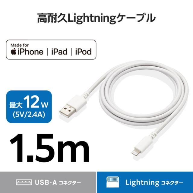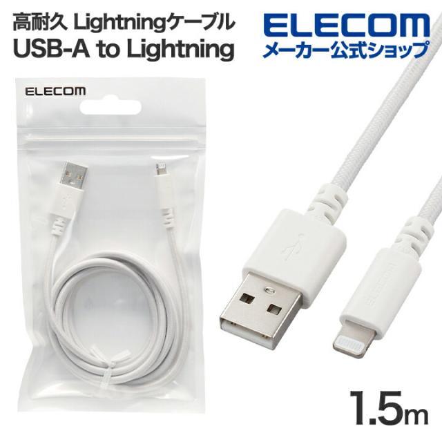 エレコム 高耐久 Lightningケーブル USB-A to ライトニング ケーブル 最大12W 1.5m ホワイト┃MPA-UALSEC15WH
