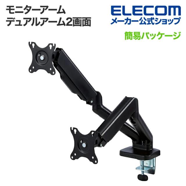 エレコム モニターアーム デュアルアーム 2画面 2台 液晶 モニター PCモニター 17?32インチサイズ対応 ガススプリング式 ガス┃DPA-DS02BK