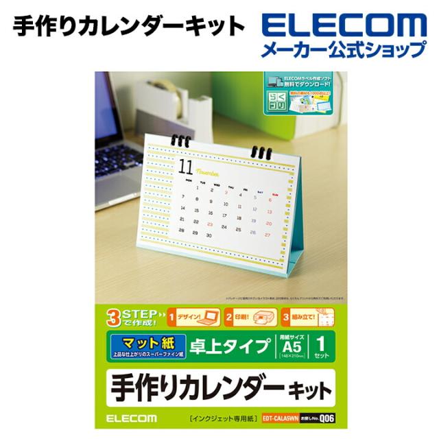 エレコム 家庭のプリンタでオリジナルカレンダーが簡単に作れる!手作りカレンダーキット(手作りカレンダーセット) ホワイト A5・卓上タイプ┃EDT-CALA5WN