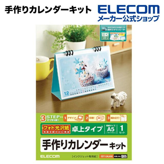 エレコム 家庭のプリンタでオリジナルカレンダーが簡単に作れる!手作りカレンダーキット(手作りカレンダーセット) ホワイト A5・卓上タイプ┃EDT-CALA5K